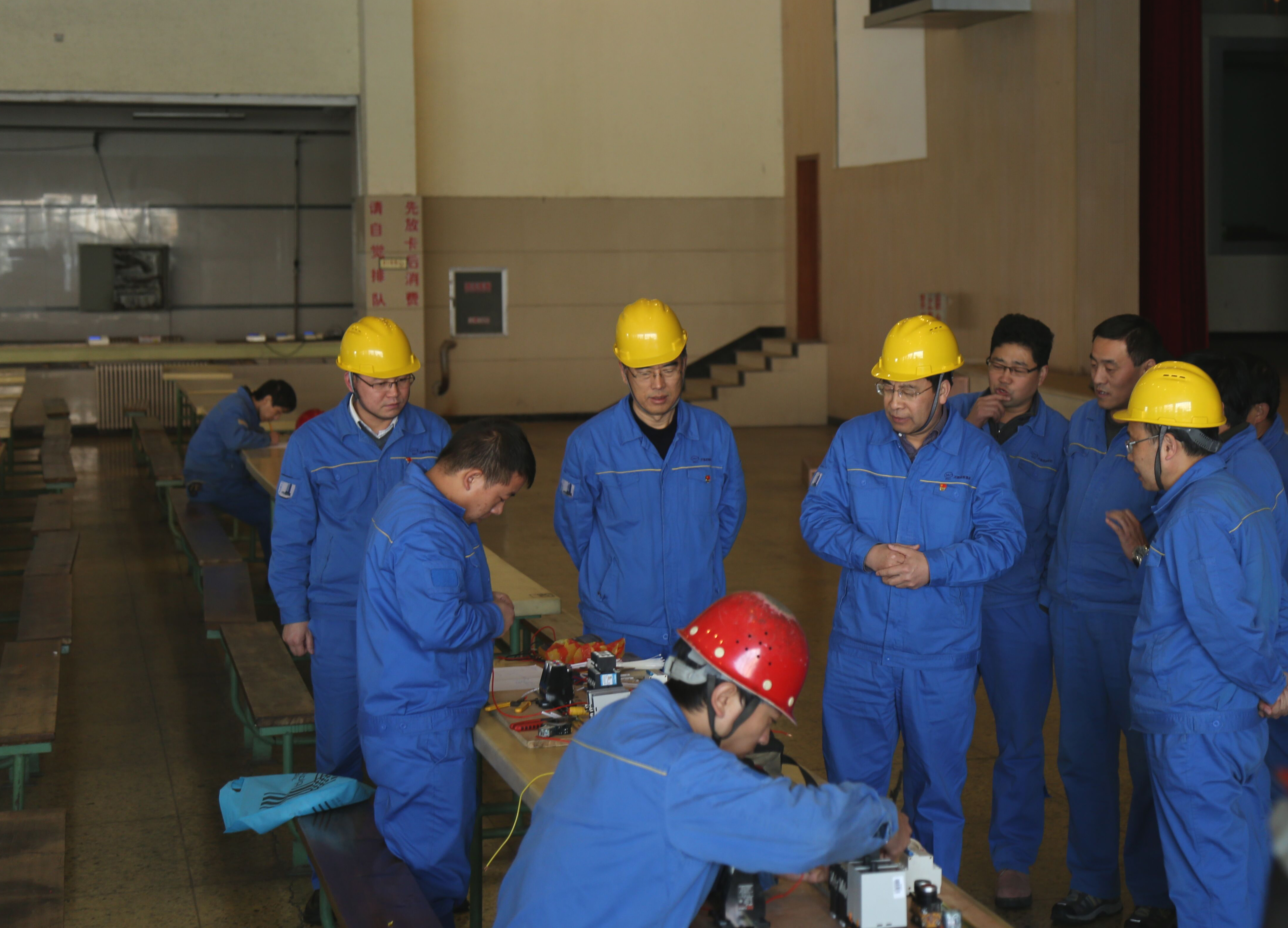 11月23日,集團(tuán)公司董事長(zhǎng)李躍民、黨委副書記王宏偉、總工王瑞奇到電工、鉗工晉級(jí)實(shí)踐考試現(xiàn)場(chǎng)察看。