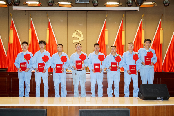 上午8時30分,身著藍色工裝的全體黨員干部在激昂的國歌聲中起立。15名新黨員面對黨旗莊嚴宣誓,光榮加入黨組織行列。在“倒逼增效、爭當先鋒”活動中涌現(xiàn)出的27名優(yōu)秀黨員、4名優(yōu)秀黨務工作者、4個優(yōu)秀黨支部受到表彰。萬基鋁加工營銷中心板帶處業(yè)務員張功勛代表優(yōu)秀黨員、二鋁電解一車間四區(qū)區(qū)長王國峰代表新黨員分別作了典型發(fā)言。