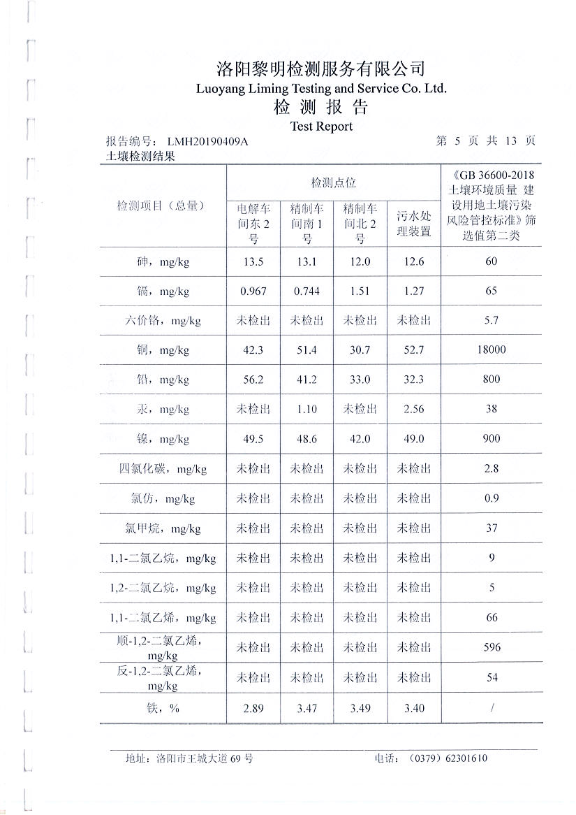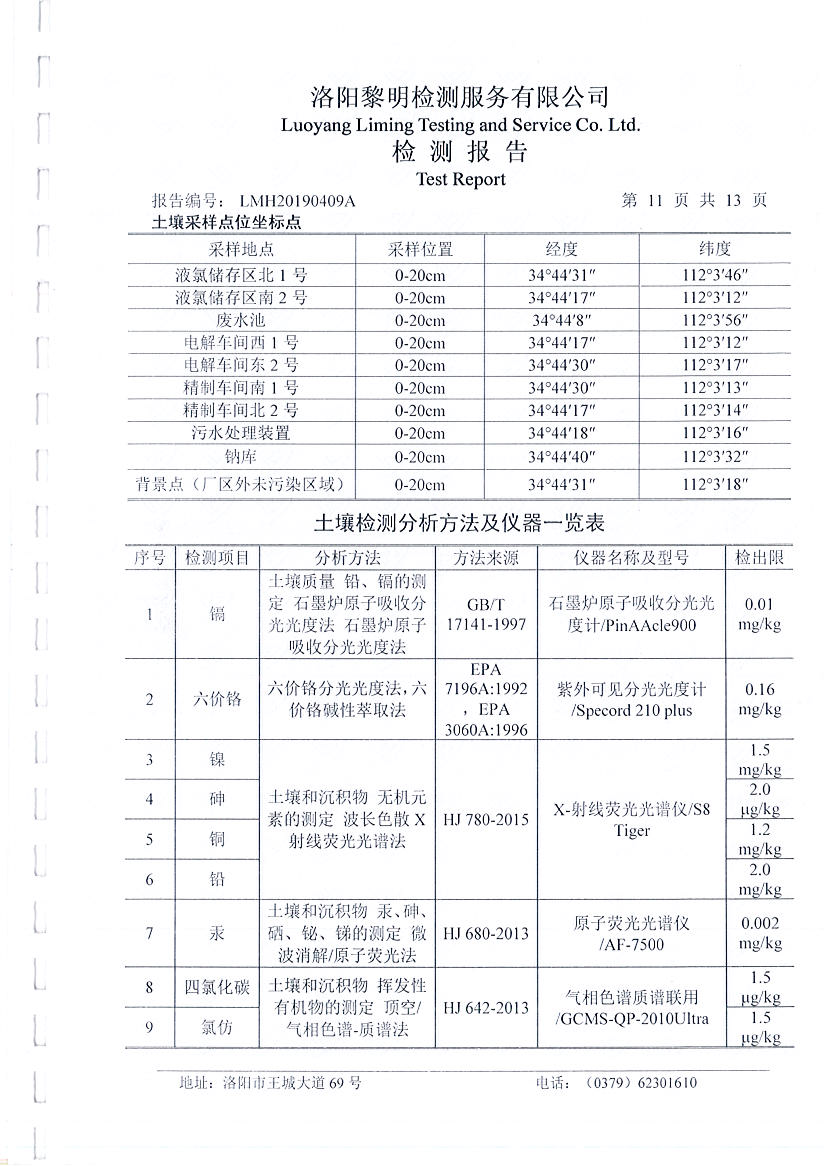 洛陽萬基金屬鈉公司土壤檢測(cè)報(bào)告公示
