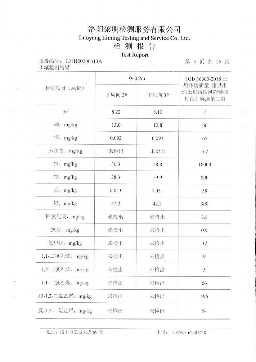 洛陽(yáng)萬(wàn)基炭素有限公司(二分廠)2020土壤自行檢測(cè)報(bào)告