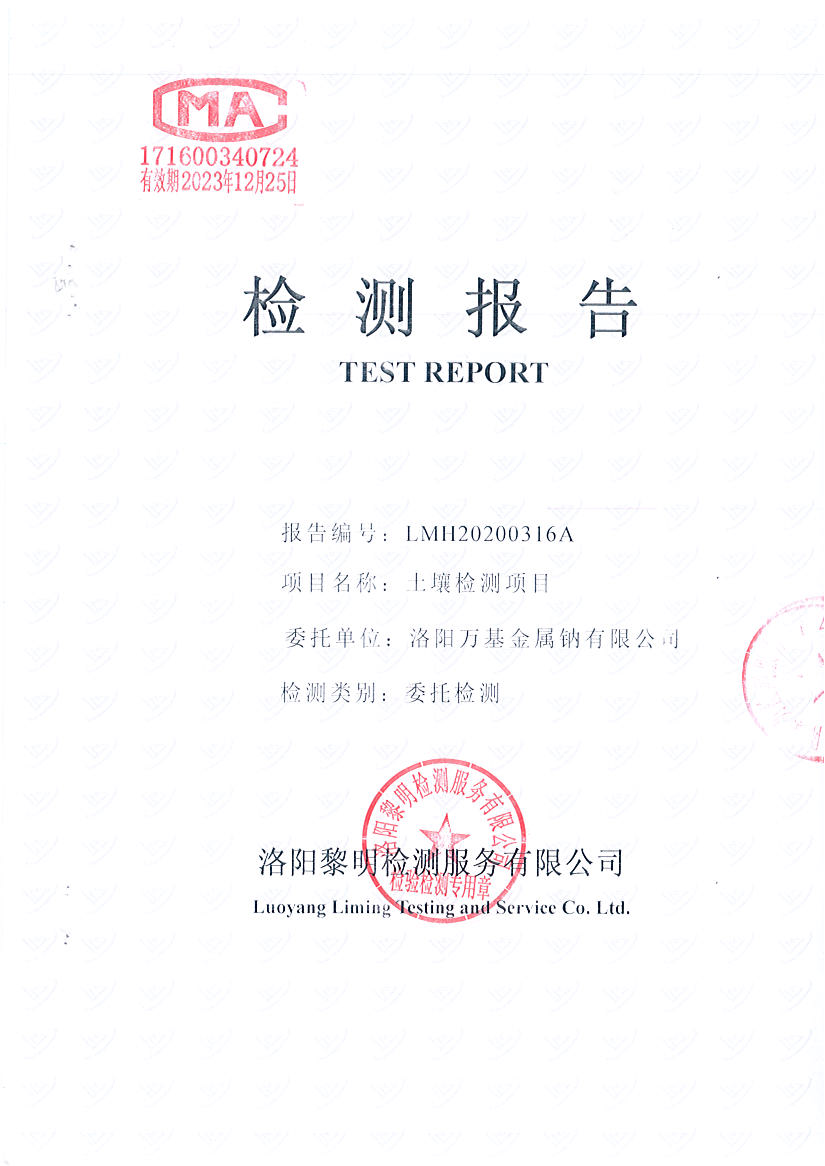 洛陽萬基金屬鈉有限公司2020土壤自行檢測報告