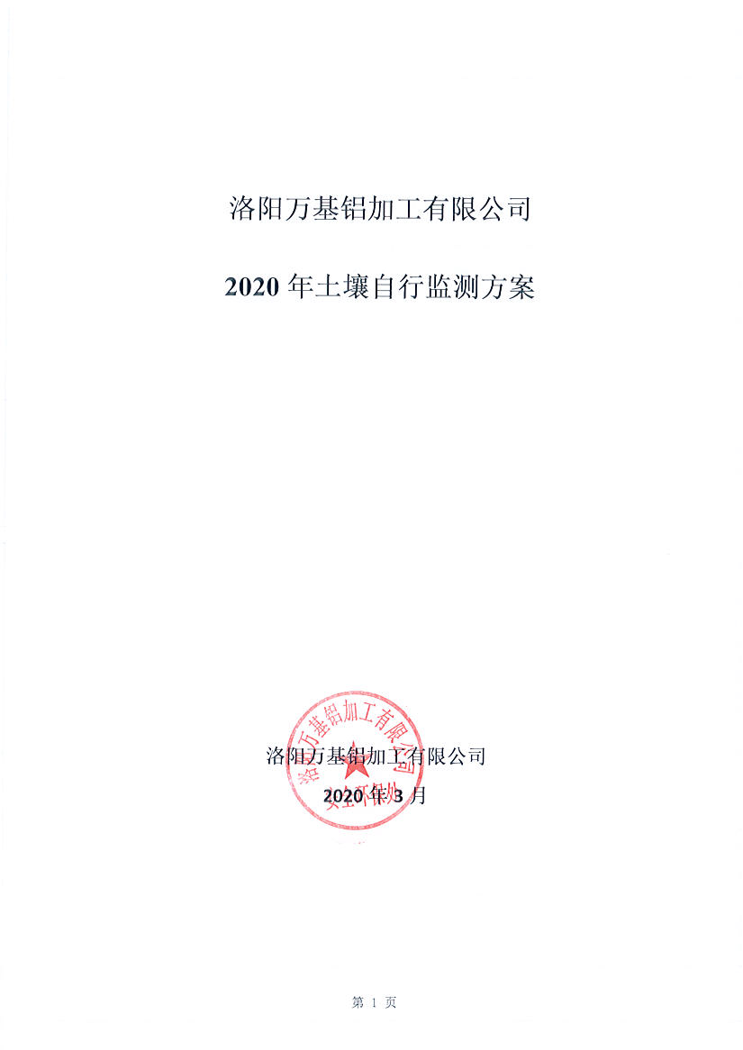 洛陽萬基鋁加工有限公司2020土壤自行監(jiān)測方案