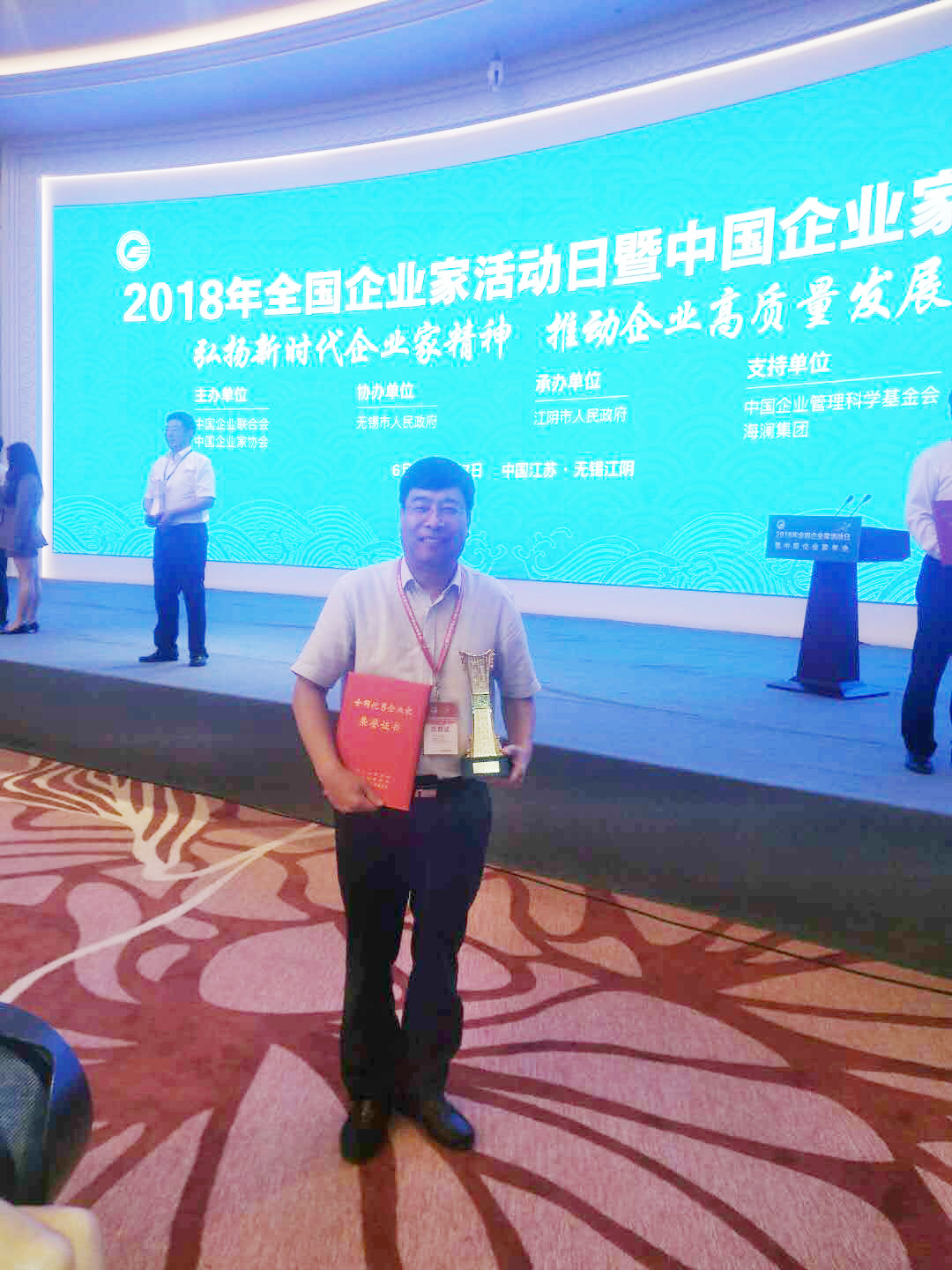 為激發(fā)和保護(hù)企業(yè)家精神,壯大企業(yè)家隊(duì)伍,增強(qiáng)企業(yè)家信心,中國(guó)企業(yè)聯(lián)合會(huì)、中國(guó)企業(yè)家協(xié)會(huì)于6月6-7日在江蘇無(wú)錫江陰市隆重舉辦了“2018年中國(guó)企業(yè)家年會(huì)暨優(yōu)秀企業(yè)家表彰大會(huì)”,萬(wàn)基控股集團(tuán)有限公司黨委書記、董事長(zhǎng)李躍民等150名企業(yè)家當(dāng)選2017-2018年度全國(guó)優(yōu)秀企業(yè)家。本次會(huì)議以“弘揚(yáng)新時(shí)代企業(yè)家精神,推動(dòng)企業(yè)高質(zhì)量發(fā)展”為主題,表彰全國(guó)優(yōu)秀企業(yè)家,主要是弘揚(yáng)企業(yè)家精神,營(yíng)造尊重、關(guān)心、支持企業(yè)家的良好社會(huì)氛圍,促進(jìn)企業(yè)家隊(duì)伍健康成長(zhǎng)。全國(guó)優(yōu)秀企業(yè)家每?jī)赡暝u(píng)選一次。
