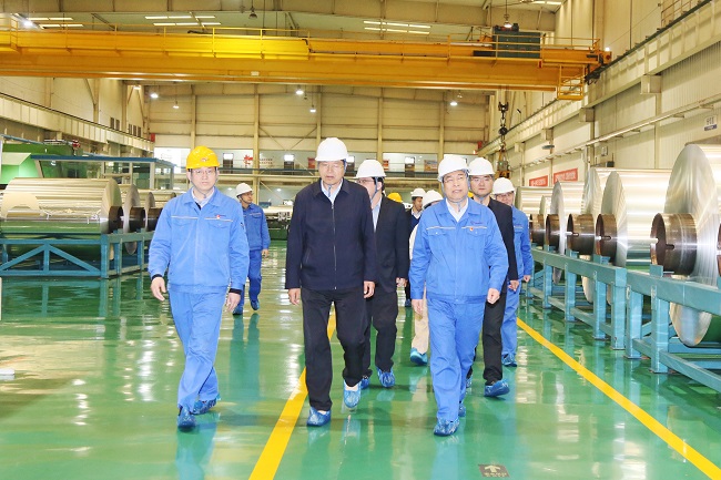 3月21日,洛陽(yáng)國(guó)宏投資控股集團(tuán)黨委副書記、總經(jīng)理郭義民,黨委委員、副總經(jīng)理張軼一行到萬(wàn)基鋁業(yè)公司、鋁加工公司、石墨公司、炭素公司、鋁鈦合金公司、板錠廠及2×60萬(wàn)千瓦機(jī)組建設(shè)工地調(diào)研。黨委書記、董事長(zhǎng)李躍民,副董事長(zhǎng)、總經(jīng)理吳文君等陪同。