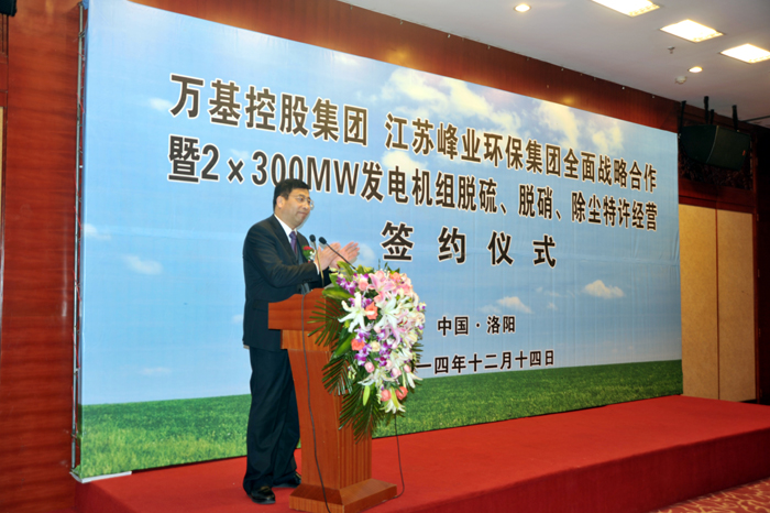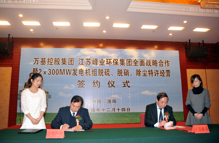 12月14日上午,萬基控股集團與江蘇峰業(yè)科技環(huán)保集團舉行全面戰(zhàn)略合作暨2X30萬千瓦機組脫硫、脫硝、除塵工程特許經(jīng)營簽約儀式,雙方將在發(fā)電機組的脫硫、脫硝、除塵等領域進行合作。江蘇峰業(yè)科技環(huán)保集團邀請出席的領導有中國環(huán)保產(chǎn)業(yè)協(xié)會副會長徐鳳剛、揚州市政府秘書長王逍宵、揚州市經(jīng)信委主任尤在晶、揚州市江都區(qū)常委副區(qū)長增萬忠、揚州市江都區(qū)發(fā)改委主任黃春濤、江都區(qū)高端裝備制造產(chǎn)業(yè)園管委會主任楊曉榮。洛陽市副市長王敬林、洛陽市發(fā)改委副主任王建中、新安縣委書記王玉峰、縣長郅書安、副縣長邵樂毅、縣產(chǎn)業(yè)集聚區(qū)主任樊棟梁、縣發(fā)改委主任李森和公司董事長李躍民、總經(jīng)理郭峰出席簽約儀式。