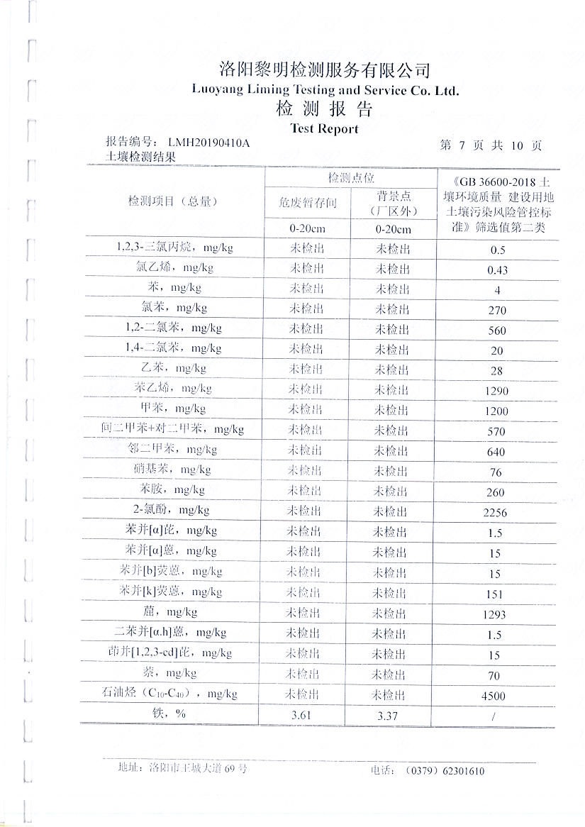 河南萬基鋁業(yè)股份有限公司(二分廠)土壤檢測報告公示