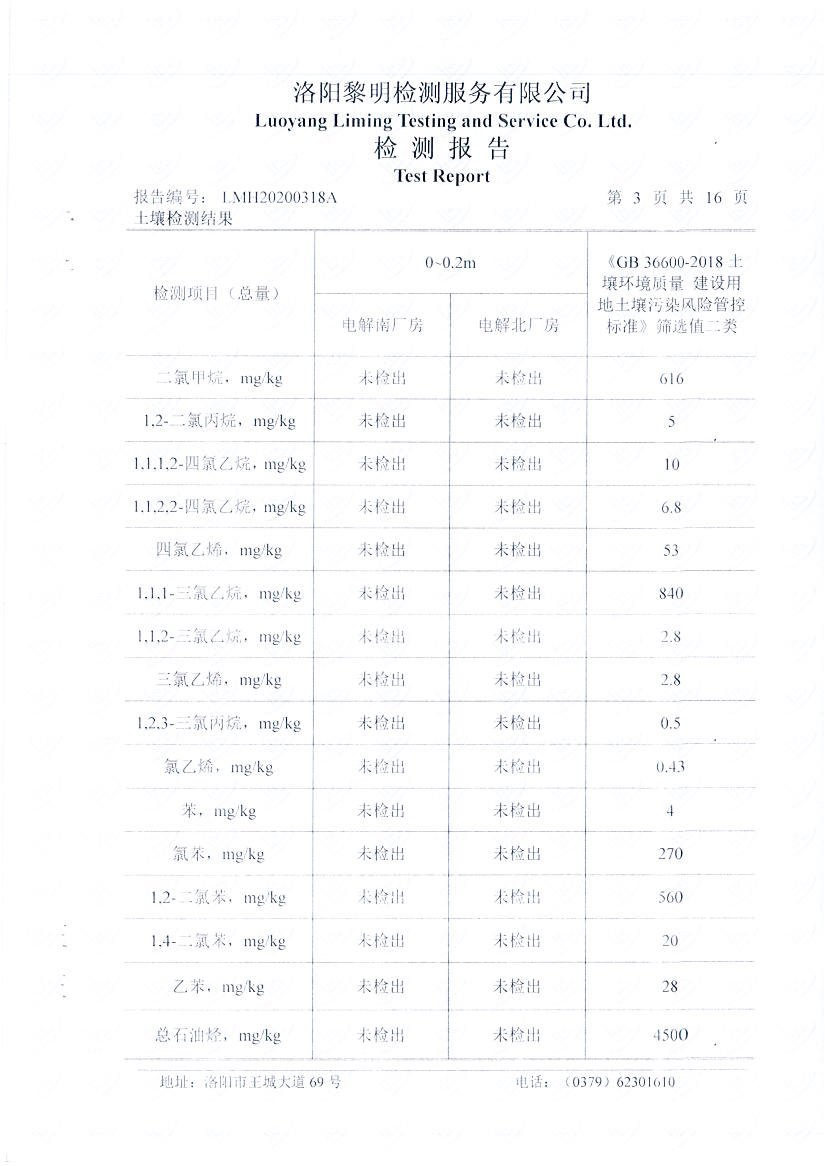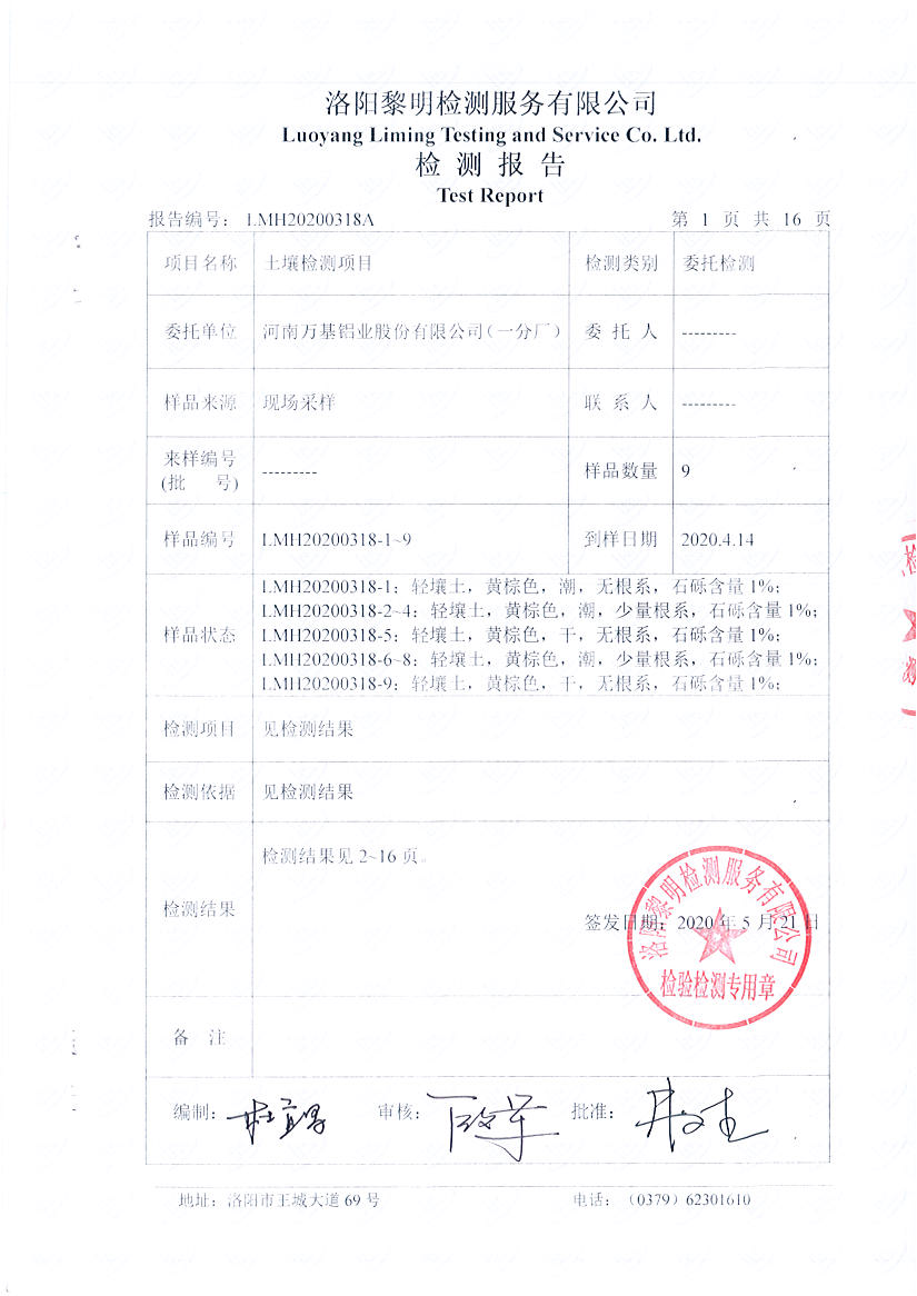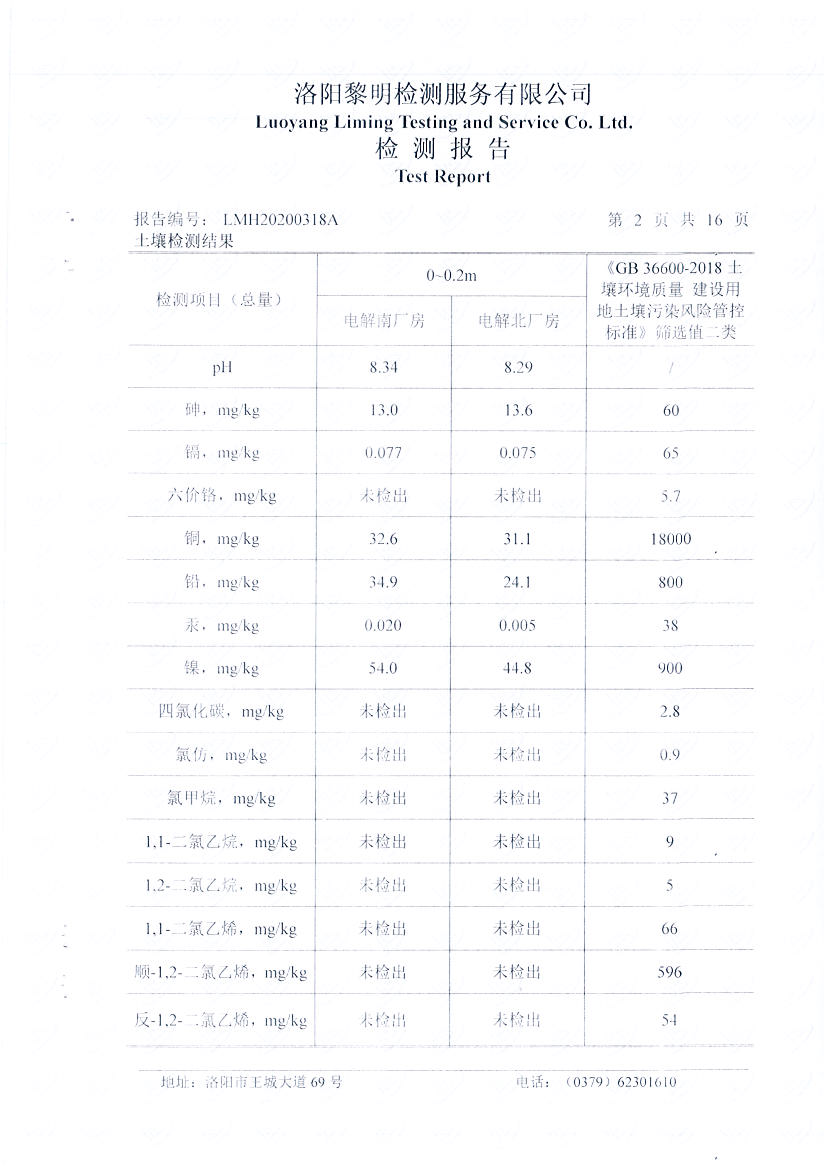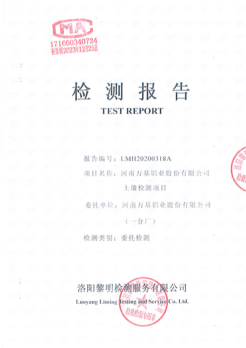 河南萬基鋁業(yè)股份有限公司(一分廠)2020土壤自行檢測報(bào)告