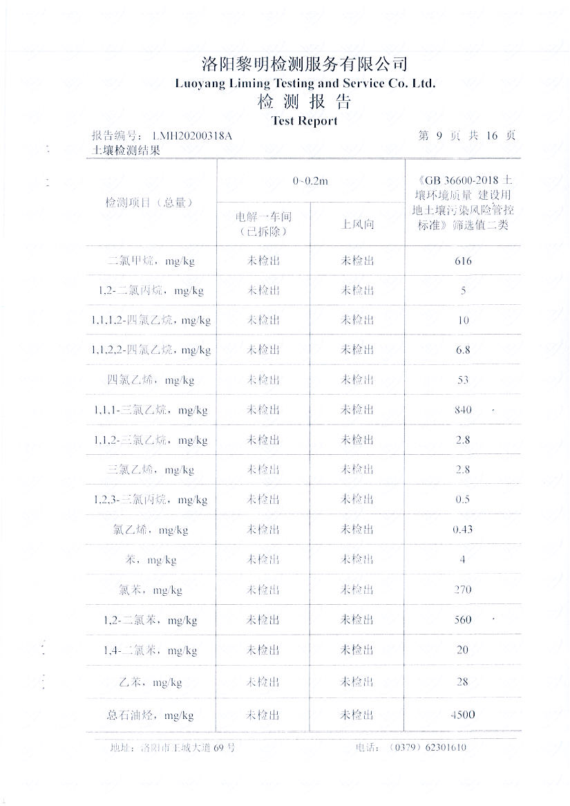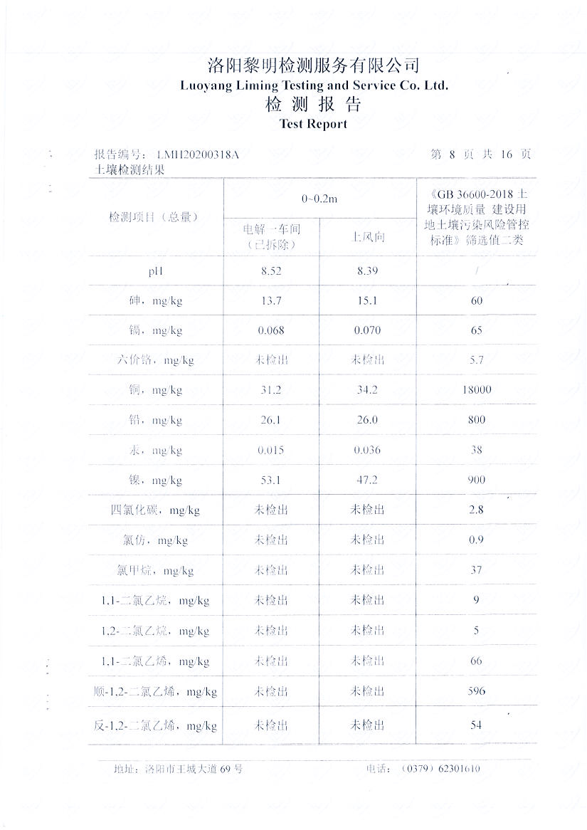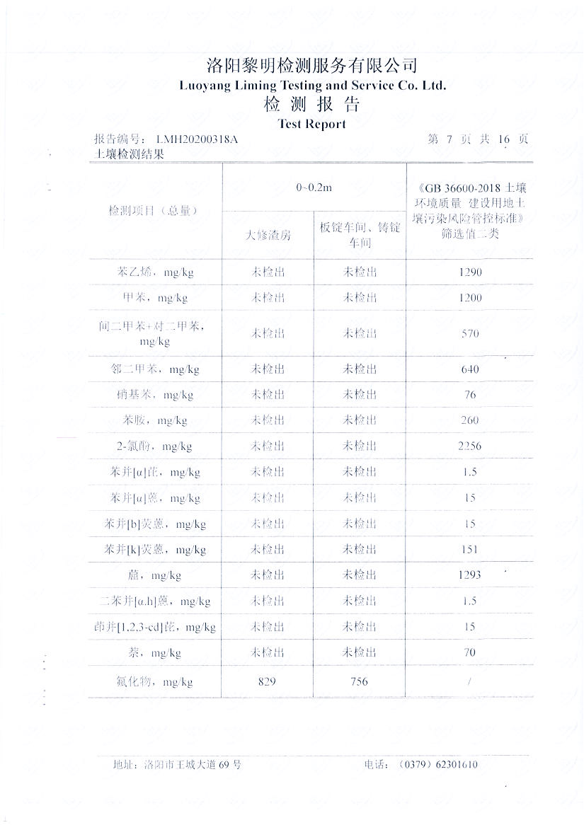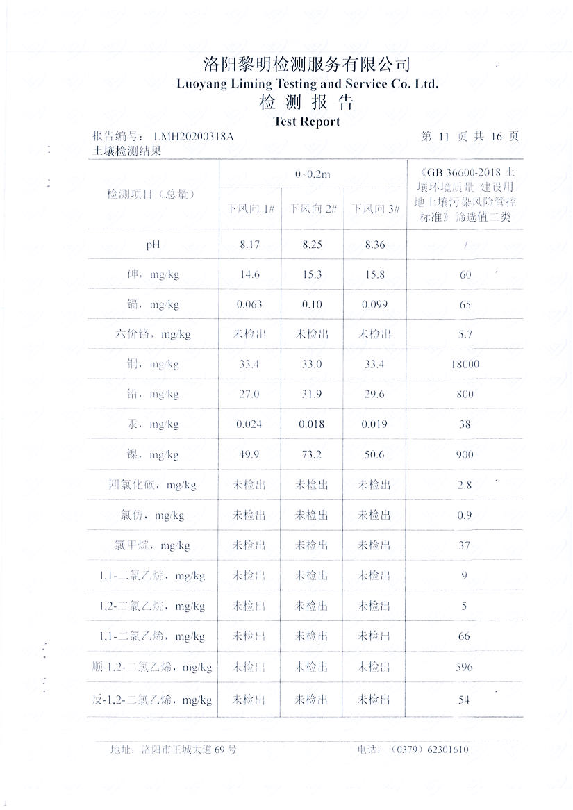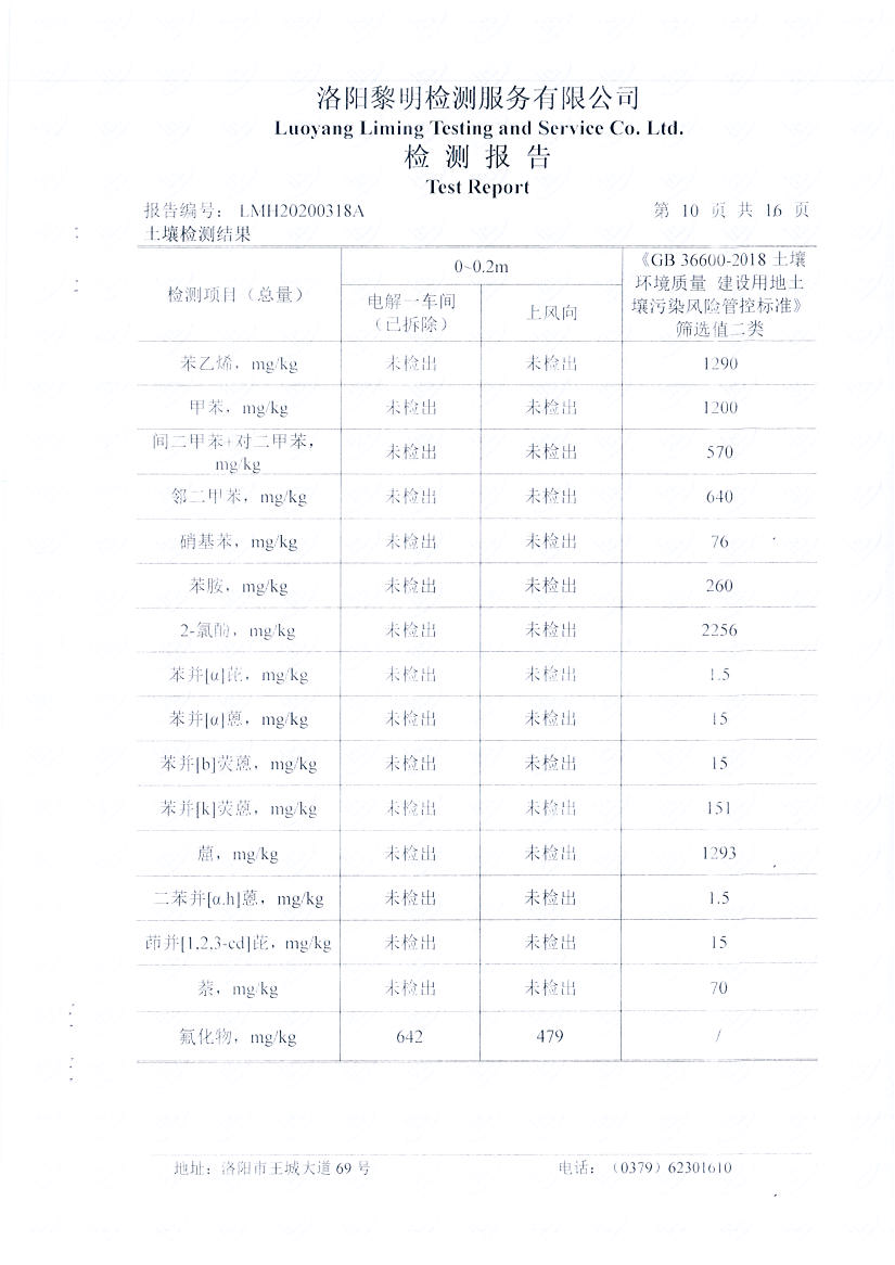 河南萬基鋁業(yè)股份有限公司(一分廠)2020土壤自行檢測報(bào)告