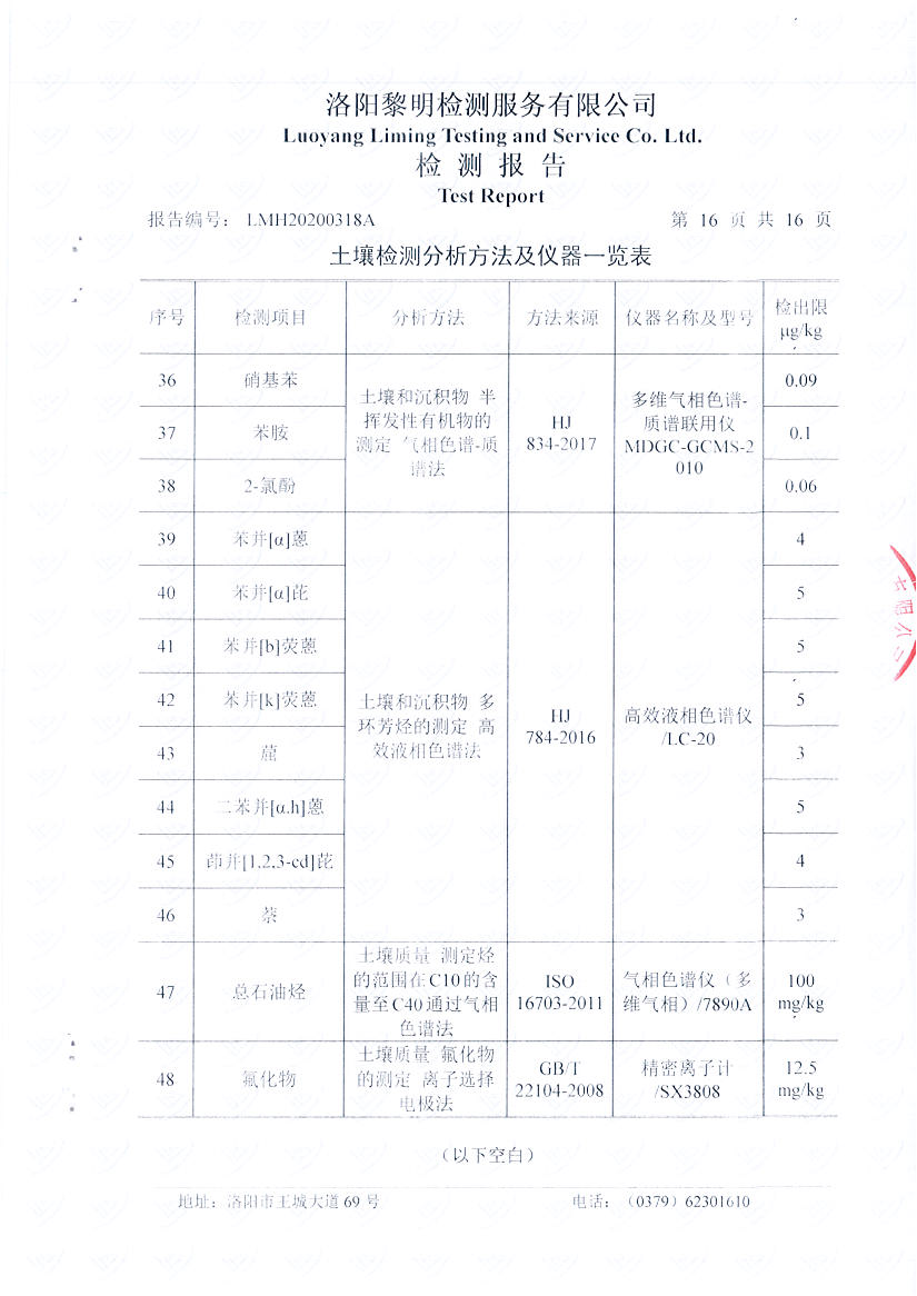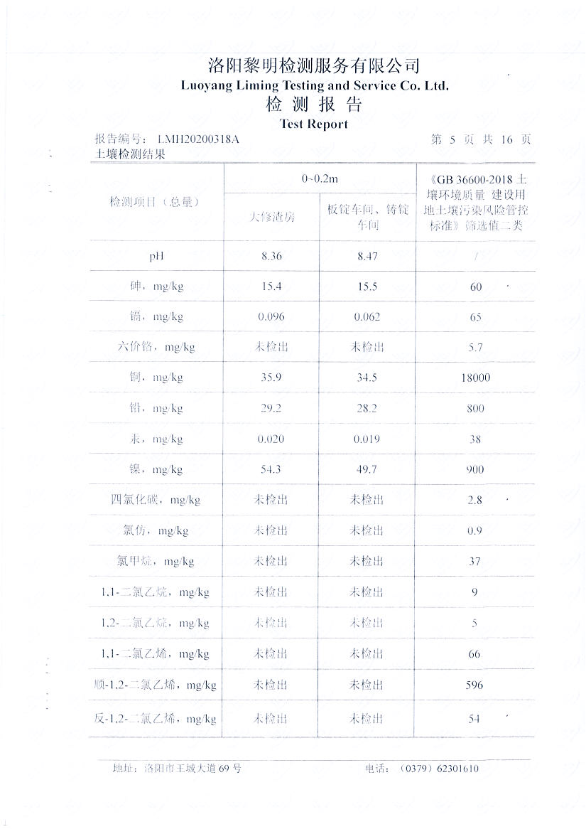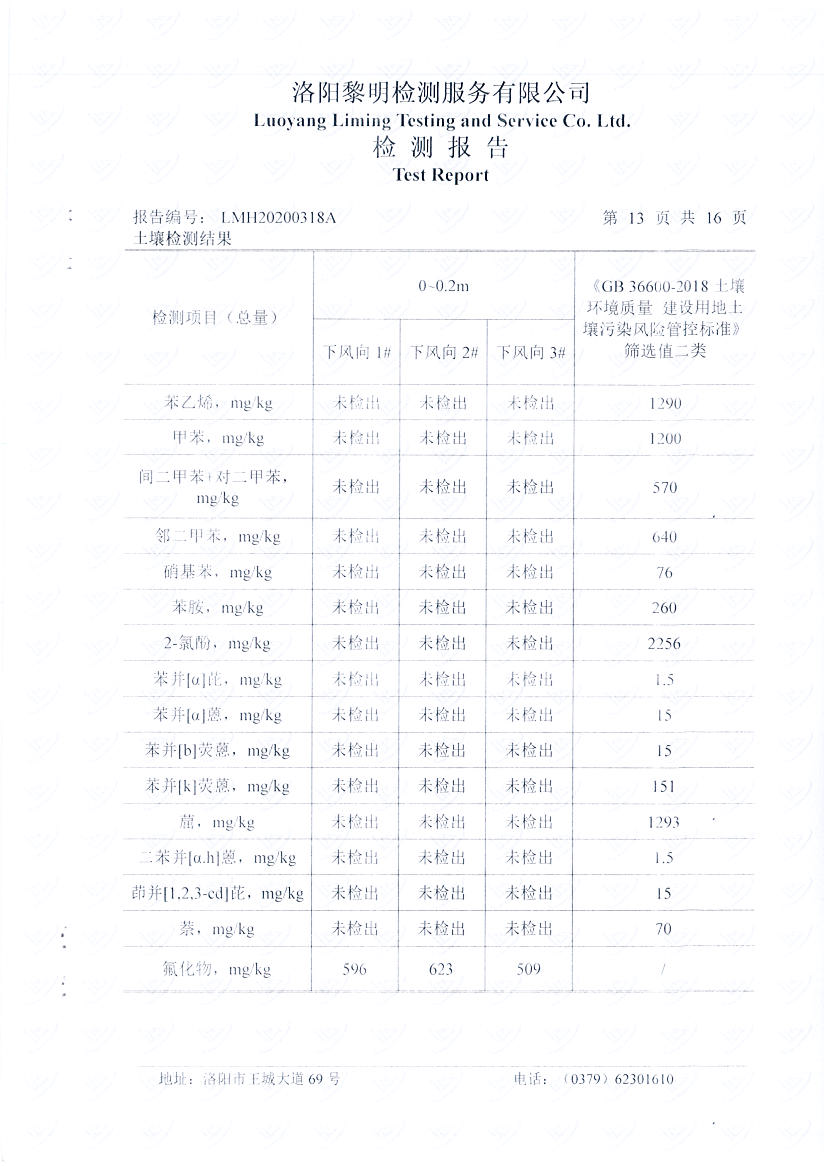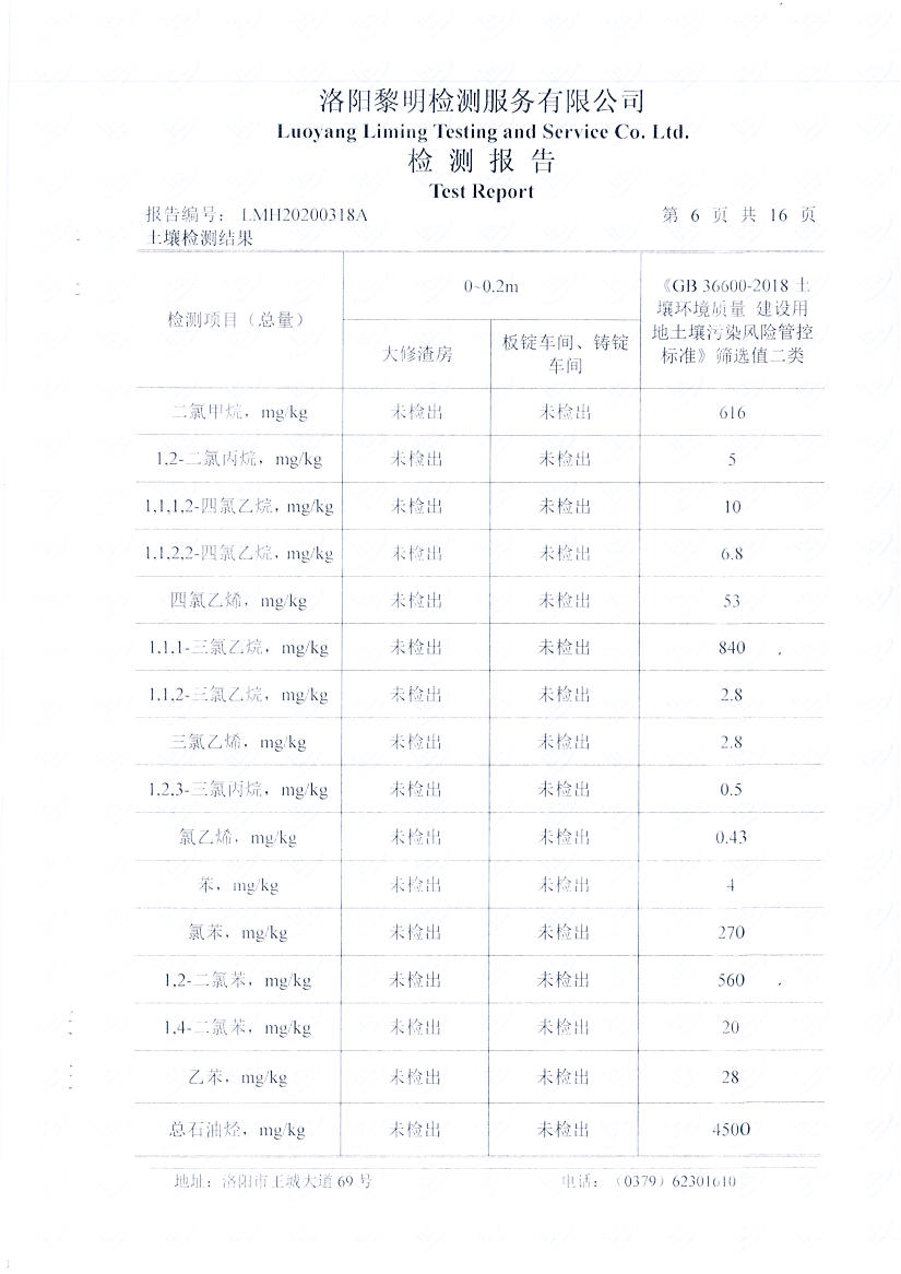 河南萬基鋁業(yè)股份有限公司(一分廠)2020土壤自行檢測報(bào)告