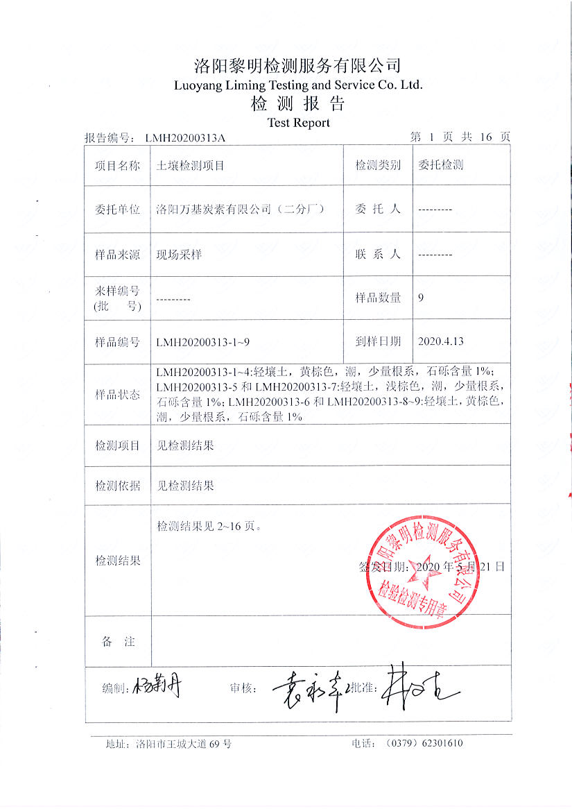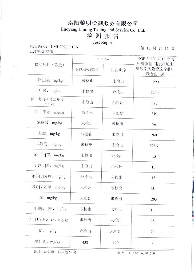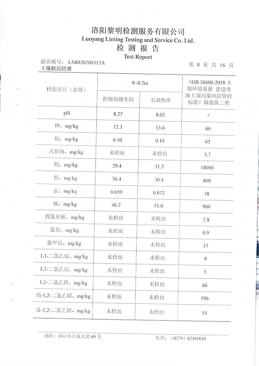 洛陽(yáng)萬(wàn)基炭素有限公司(二分廠)2020土壤自行檢測(cè)報(bào)告