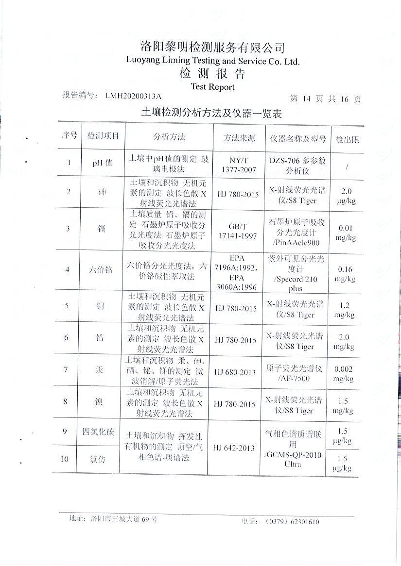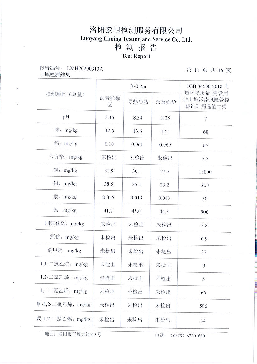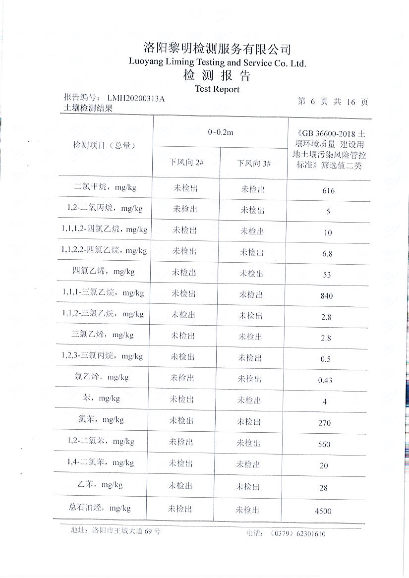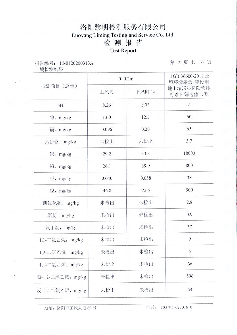 洛陽(yáng)萬(wàn)基炭素有限公司(二分廠)2020土壤自行檢測(cè)報(bào)告