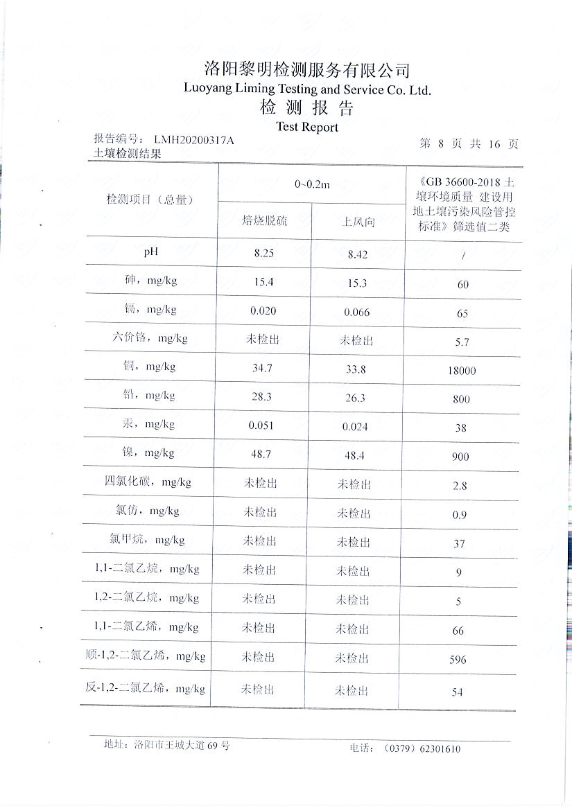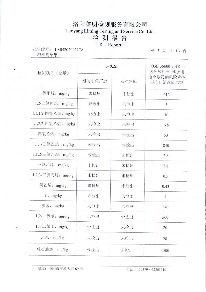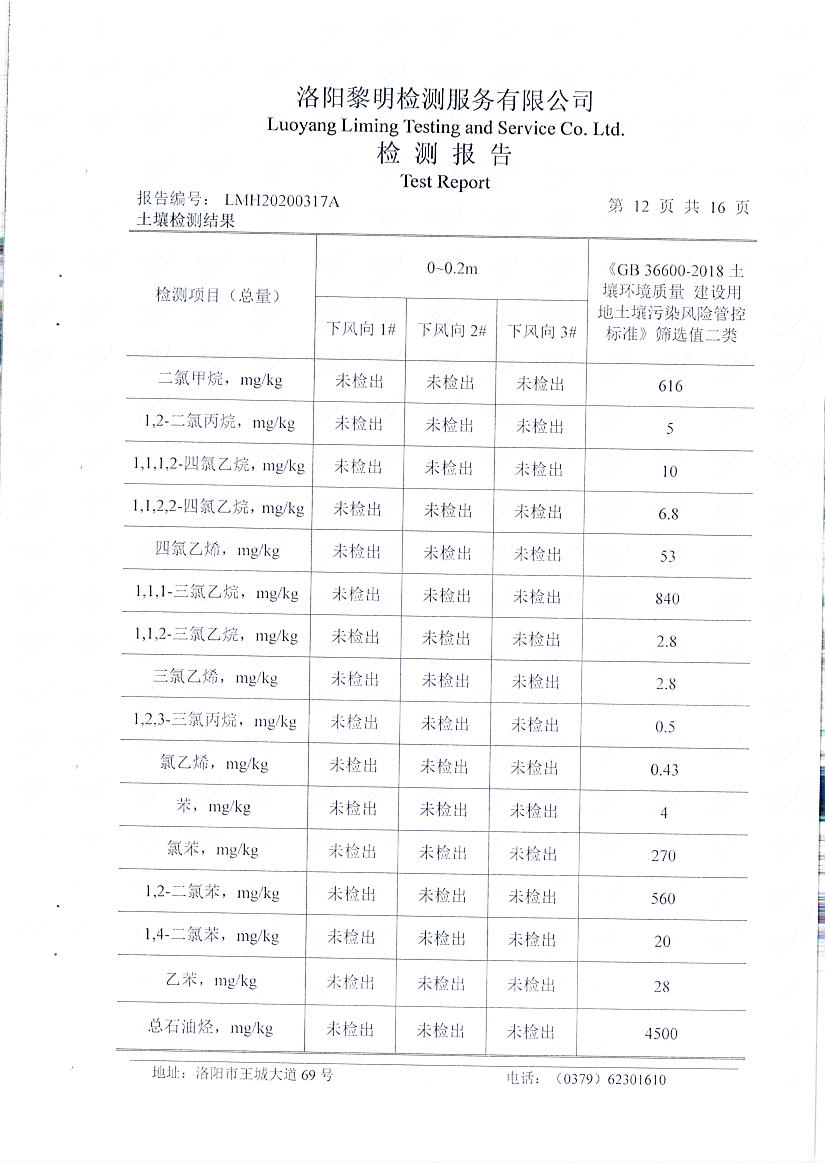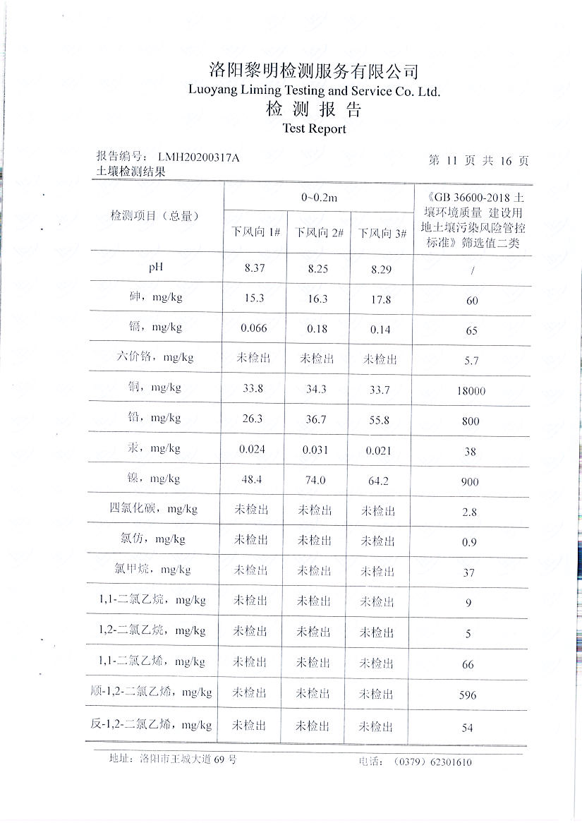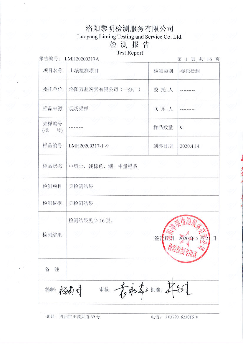 洛陽(yáng)萬(wàn)基炭素有限公司(一分廠)2020土壤自行檢測(cè)報(bào)告