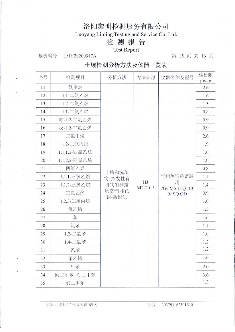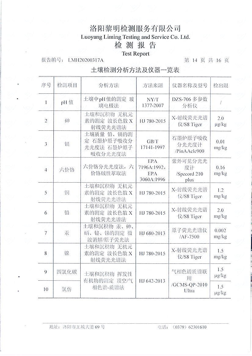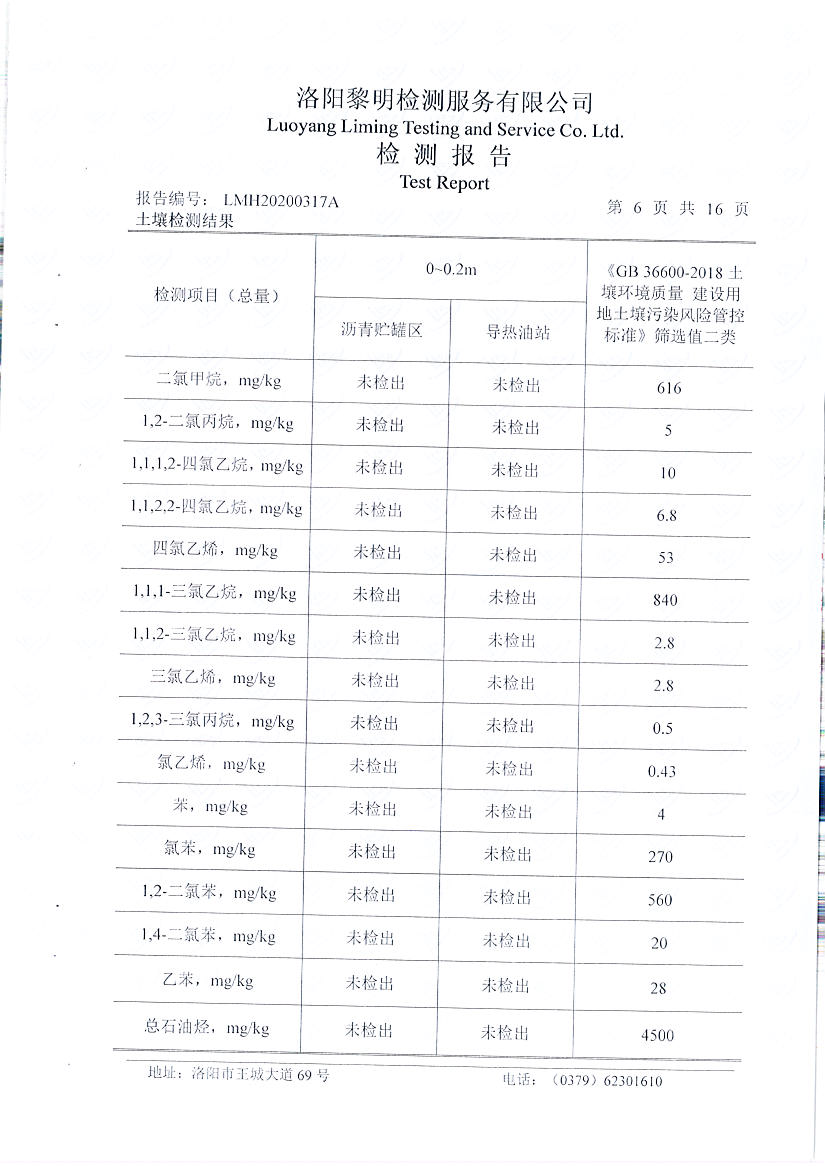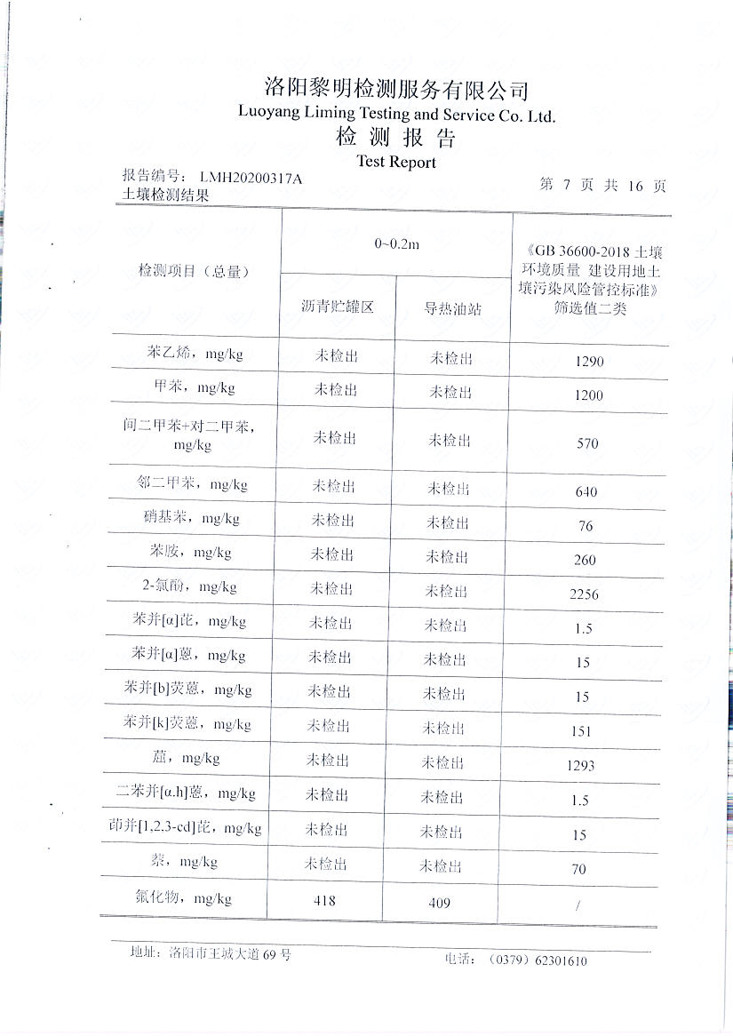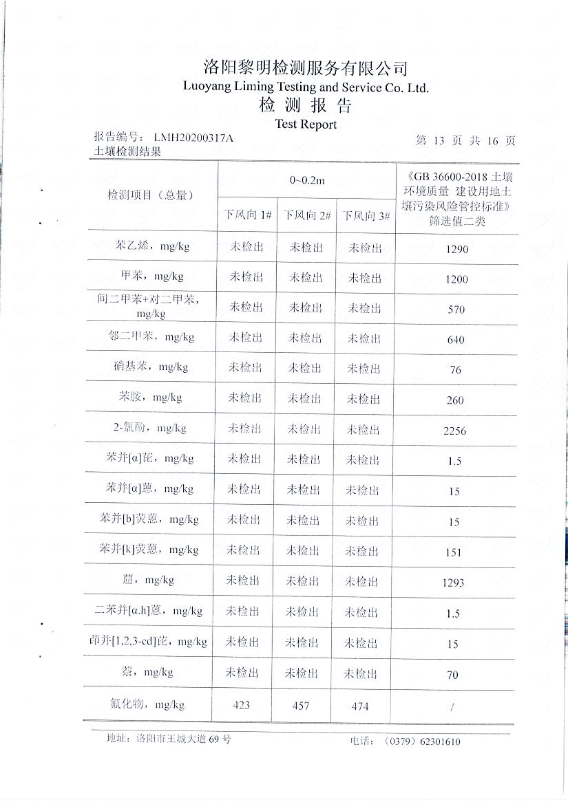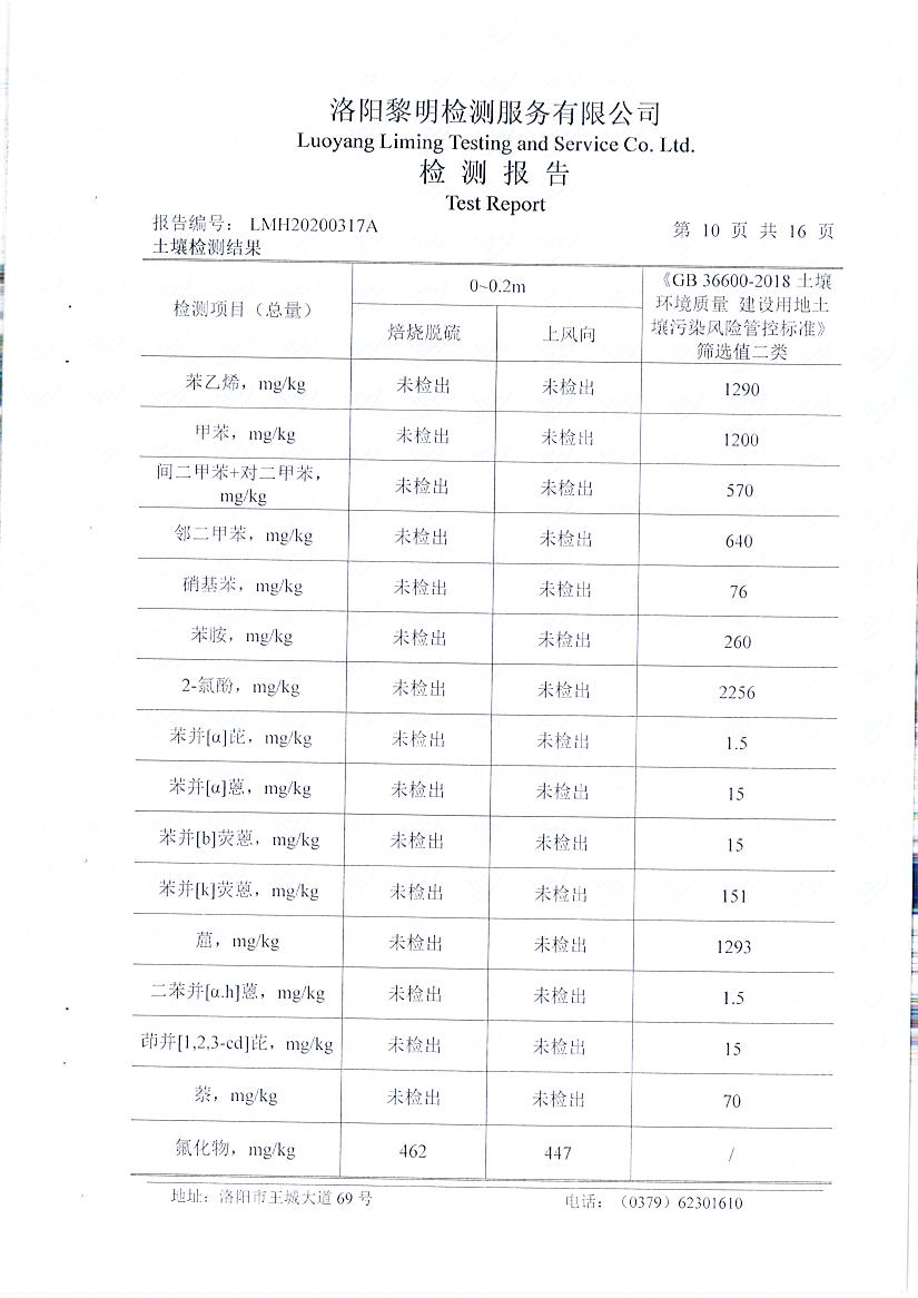 洛陽(yáng)萬(wàn)基炭素有限公司(一分廠)2020土壤自行檢測(cè)報(bào)告