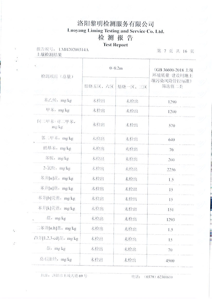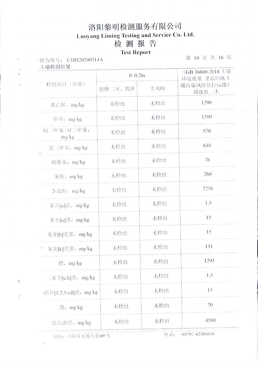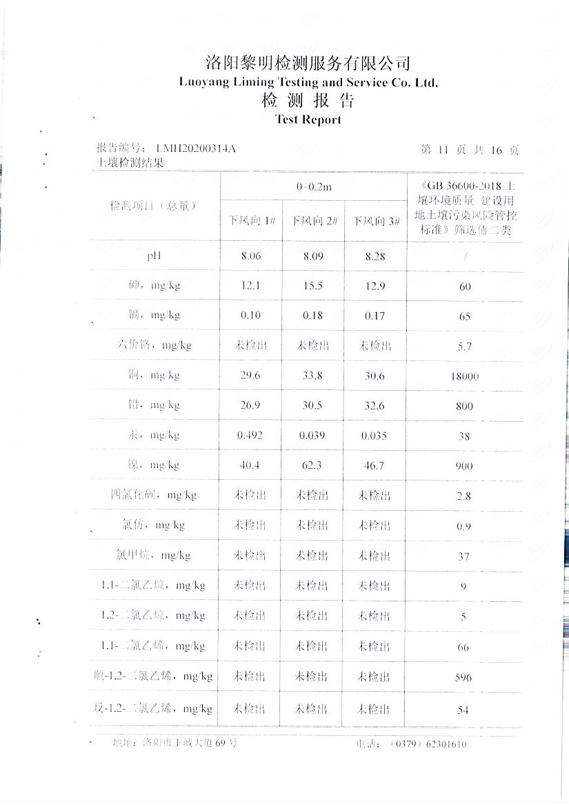 萬基控股集團石墨制品有限公司2020土壤自行檢測報告